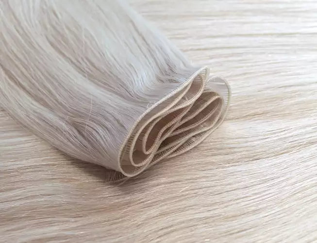 A 45 cm (18") weft has a hair weight of 50 grams, while a 60 cm (24") weft weighs 60 grams.